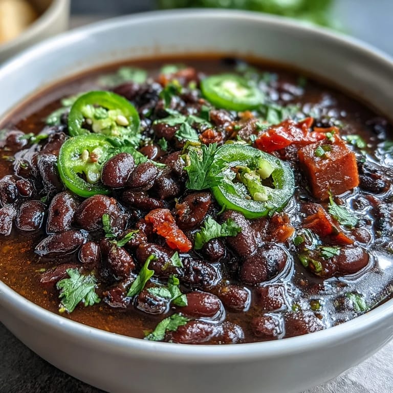 Pin My neighbor knocked on the door one February afternoon with a container of leftover ham from her holiday dinner, and I realized I had exactly what I needed to transform it into something warming. Black bean soup seemed obvious, but I wanted more than just obvious—I wanted that sharp, unexpected heat that would make people pause mid-spoonful. Jalapeños were the answer, and that first batch taught me how smoke and spice could turn a simple weeknight dinner into something my family asked for again and again.