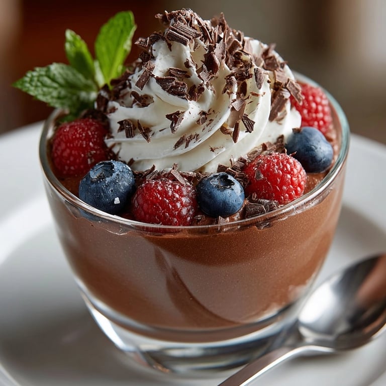 - Optional toppings: Each adds a unique touch Dairy free whipped or coconut cream creates extra luxury Fresh berries give brightness Shaved dark chocolate adds more chocolate depth Mint leaves bring color and a fresh note