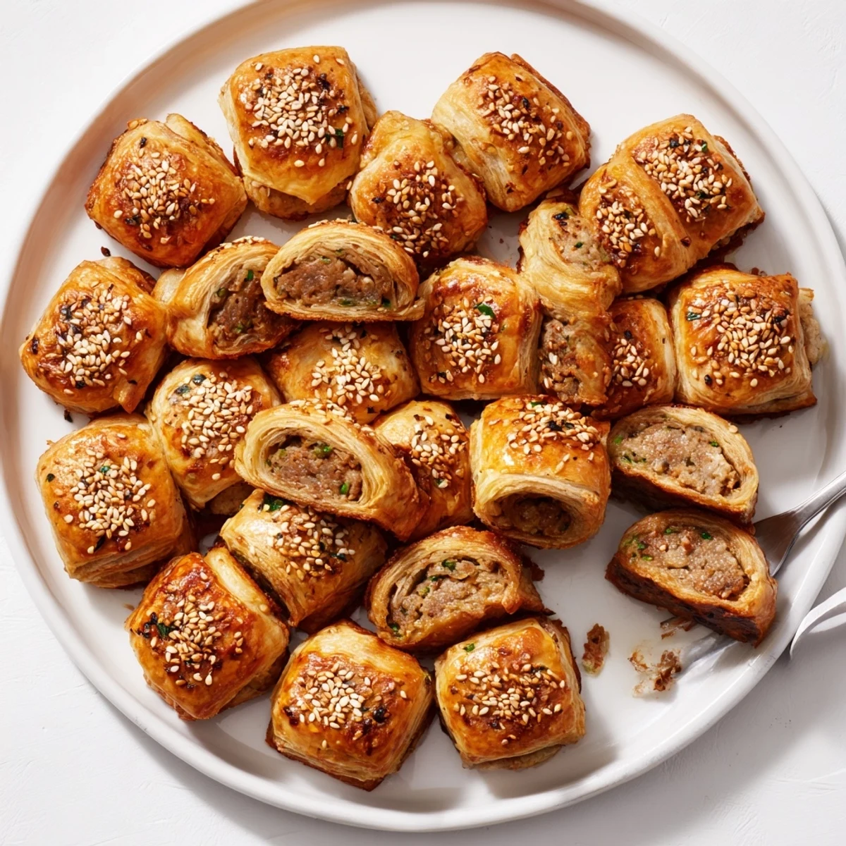 - Divide the sausage mixture in half and form each portion into a long even log Place one log along the long edge of each pastry strip