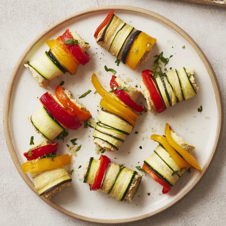 Serve these wrap roll-ups chilled or at room temperature as a fun appetizer on your holiday platter. Pair with extra hummus or a tangy yogurt dip to complement the roasted vegetable flavors. Perfect for parties, potlucks, or a nutritious snack anytime.