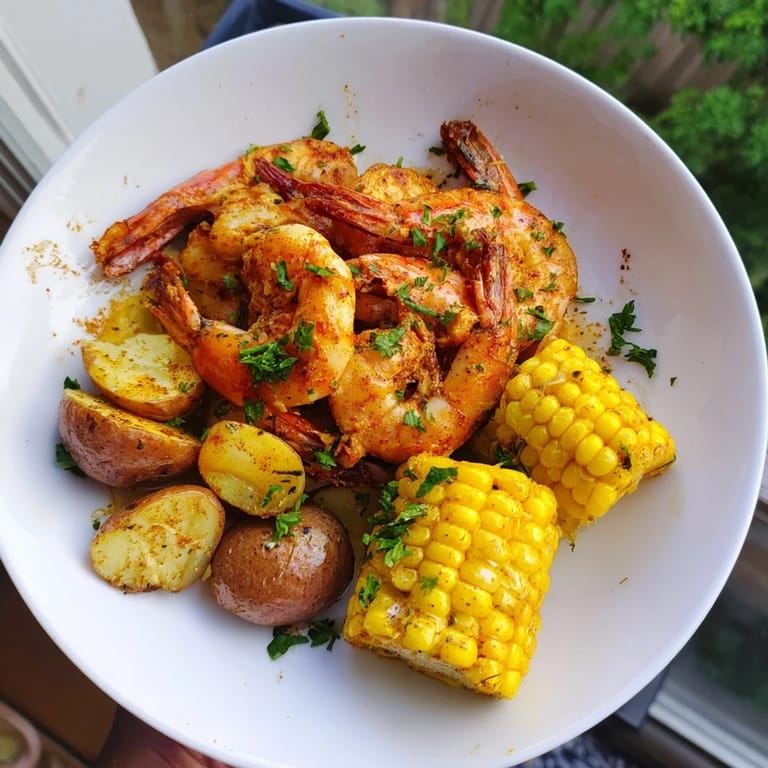 The Cajun seasoning, smoked paprika, garlic, and onion powders combine to provide a robust smoky, spicy, and savory depth that complements the natural sweetness of corn and shrimp.