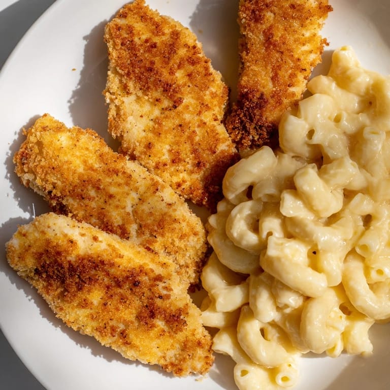 Pin Juicy, golden-brown chicken tenders served alongside creamy, classic macaroni and cheese, making this comforting duo perfect for family dinners or casual gatherings.