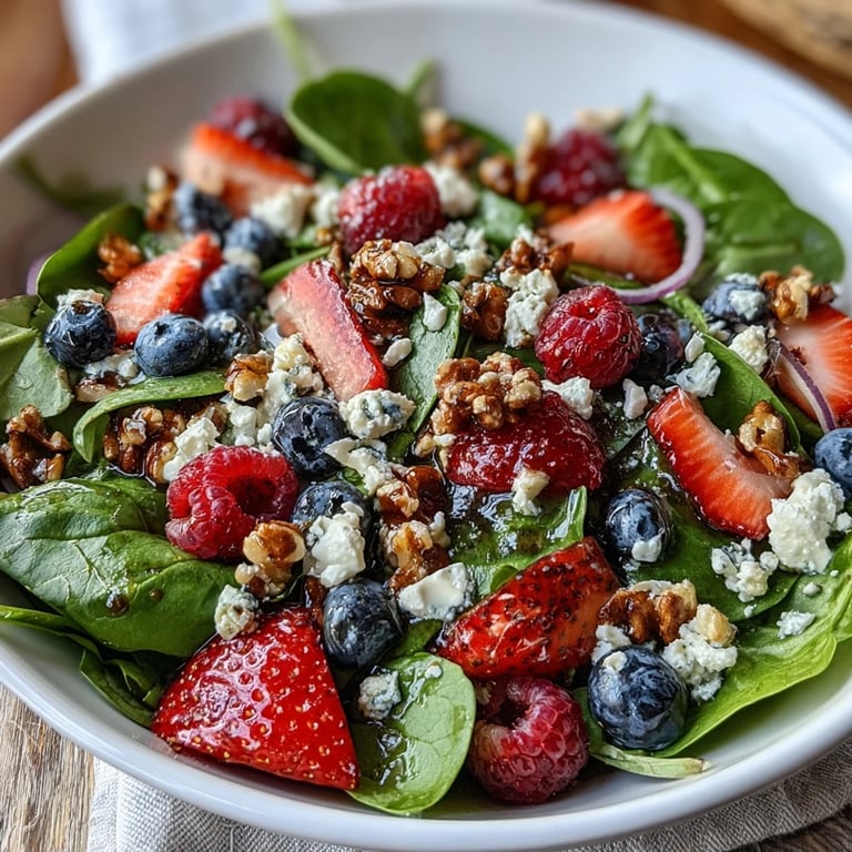 Pin I used to think salad was just filler until a neighbor handed me a bowl of this at a summer potluck. The sweetness of the berries against the tangy goat cheese completely changed my mind. It was bright, satisfying, and felt like something I'd actually crave. I went home that night and scribbled the idea on a napkin. Now it's my go-to whenever I need something that feels both healthy and indulgent.