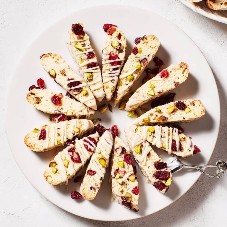 Pin Crisp, twice-baked Italian cookies packed with tart dried cranberries, crunchy pistachios, and sweet white chocolate, perfect for dipping in coffee or gifting. No dough chilling required for this easy recipe.